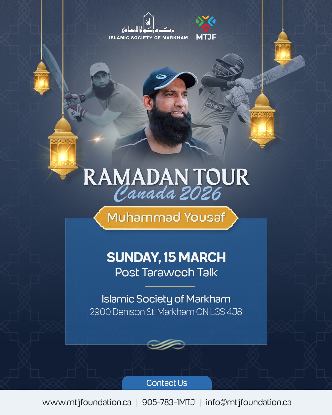 Assalamu Alaikum dear brothers and sisters, This Sunday, March 15, we will be hosting Muhammad Yousaf, former international Pakistani cricketer, at the Islamic Society of Markham as part of his...